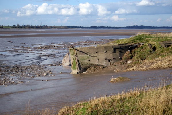 On the east bank of the Severn is the 16 mile Gloucester & Sharpness Canal which is elevated as it travels alongside the river at Purton. Soon after the opening in 1827 engineers voiced concern about possible bank erosion of the canal here from the powerful spring tides of the Severn.