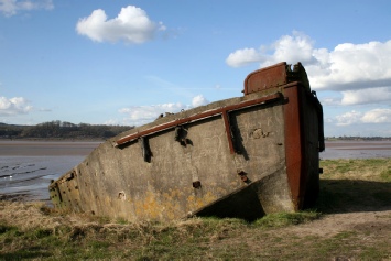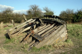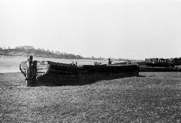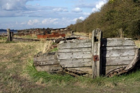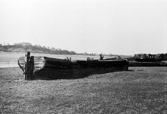 It was during 1909 that redundant vessels were placed on the bank of the river, both to prevent erosion of the banks and protect the canal. Since that year many types of vessels have been placed here, trows, concrete barges, schooners, steel dumb barges, etc., all slowly filling with silt to ensure they don’t move.