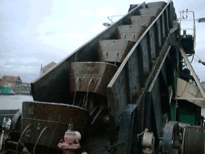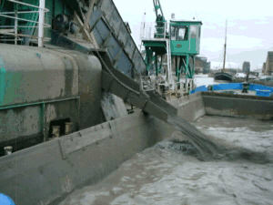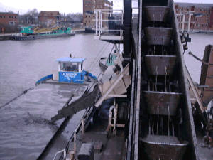 The dredger filling a motor hopper