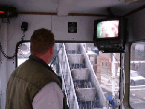 Powerful winches control the dredger