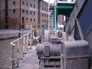 There is one head wire and four breast wires to move the dredger across the dock as her buckets dig into the mud.